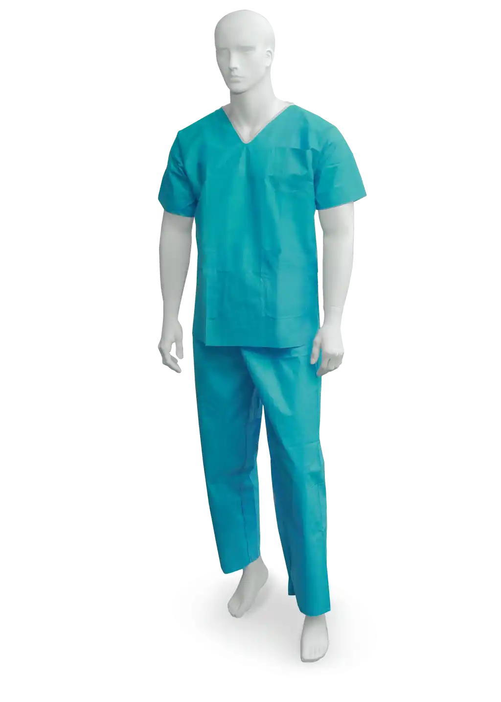 Komplet chirurgiczny OPERO to profesjonalny zestaw odzieży ochronnej przeznaczony dla personelu medycznego pracującego w środowisku o podwyższonych wymaganiach higienicznych. W skład zestawu wchodzi bluza z krótkim rękawem i spodnie z trokami w pasie. Produkt jest jednorazowy, niejałowy i służy jako ubiór wewnętrzny oraz ochronny na blokach operacyjnych i oddziałach zabiegowych.