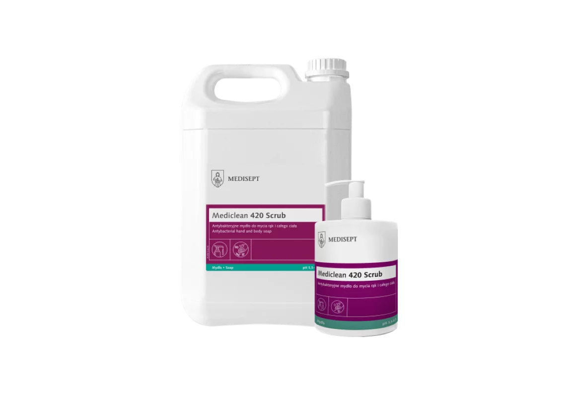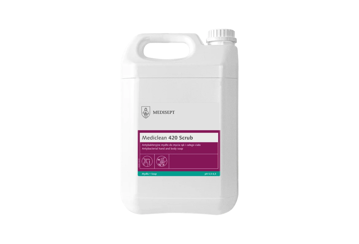 Mediclean 420 Scrub to specjalistyczne mydło w płynie o działaniu antybakteryjnym, które doskonale sprawdza się w warunkach wymagających najwyższej higieny. Produkt jest przeznaczony do mycia rąk i całego ciała, również w środowiskach medycznych, przemyśle spożywczym, gastronomii czy placówkach edukacyjnych.