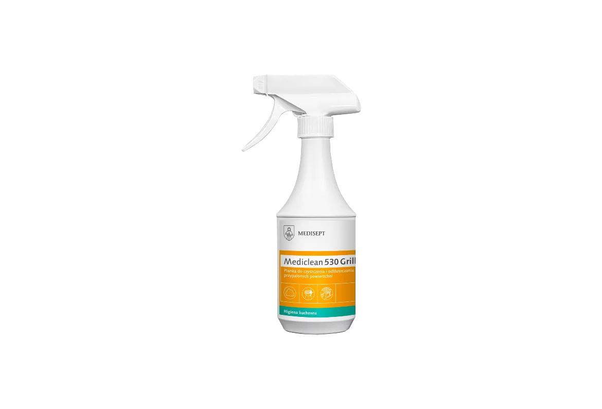 Mediclean 530 Grill to silnie działająca, alkaliczna pianka czyszcząca, stworzona z myślą o najbardziej uporczywych zabrudzeniach. Doskonale radzi sobie z tłuszczem, zapieczonymi resztkami jedzenia i nagarem – wszędzie tam, gdzie tradycyjne środki zawodzą.