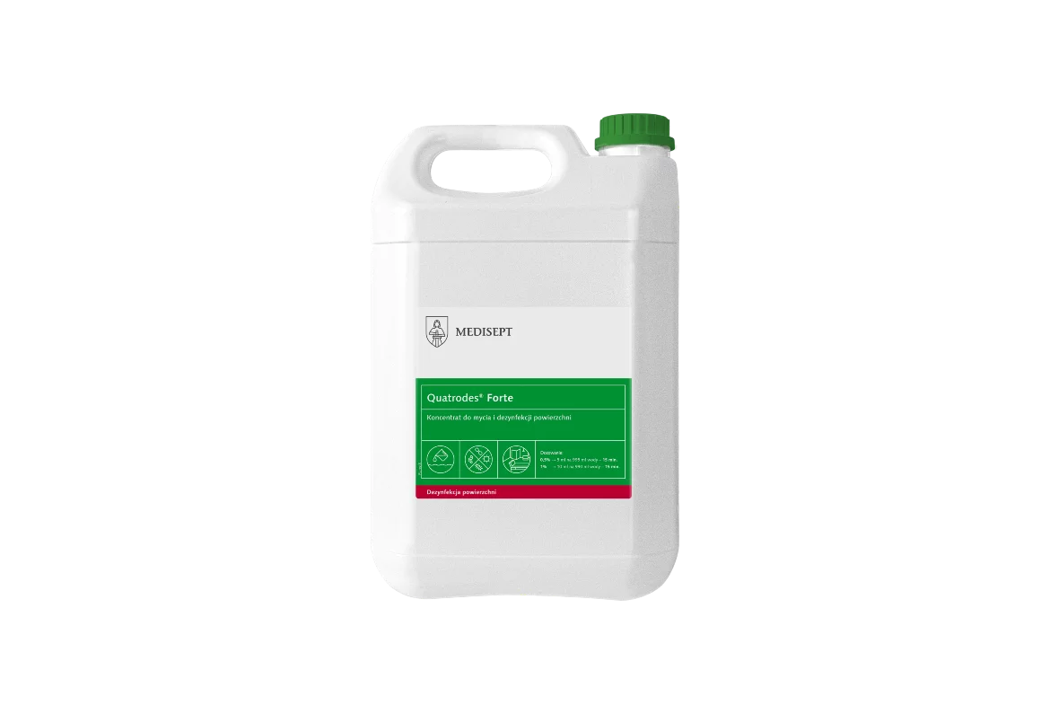 Quatrodes Forte to wszechstronny, skoncentrowany preparat do mycia i dezynfekcji powierzchni w sektorze medycznym, gastronomicznym i ogólnoużytkowym. Produkt działa już przy stężeniu 0,5% w 15 minut, a brak aldehydów i fenolu sprawia, że jest bezpieczny dla dezynfekowanych powierzchni, również tych mających kontakt z żywnością.