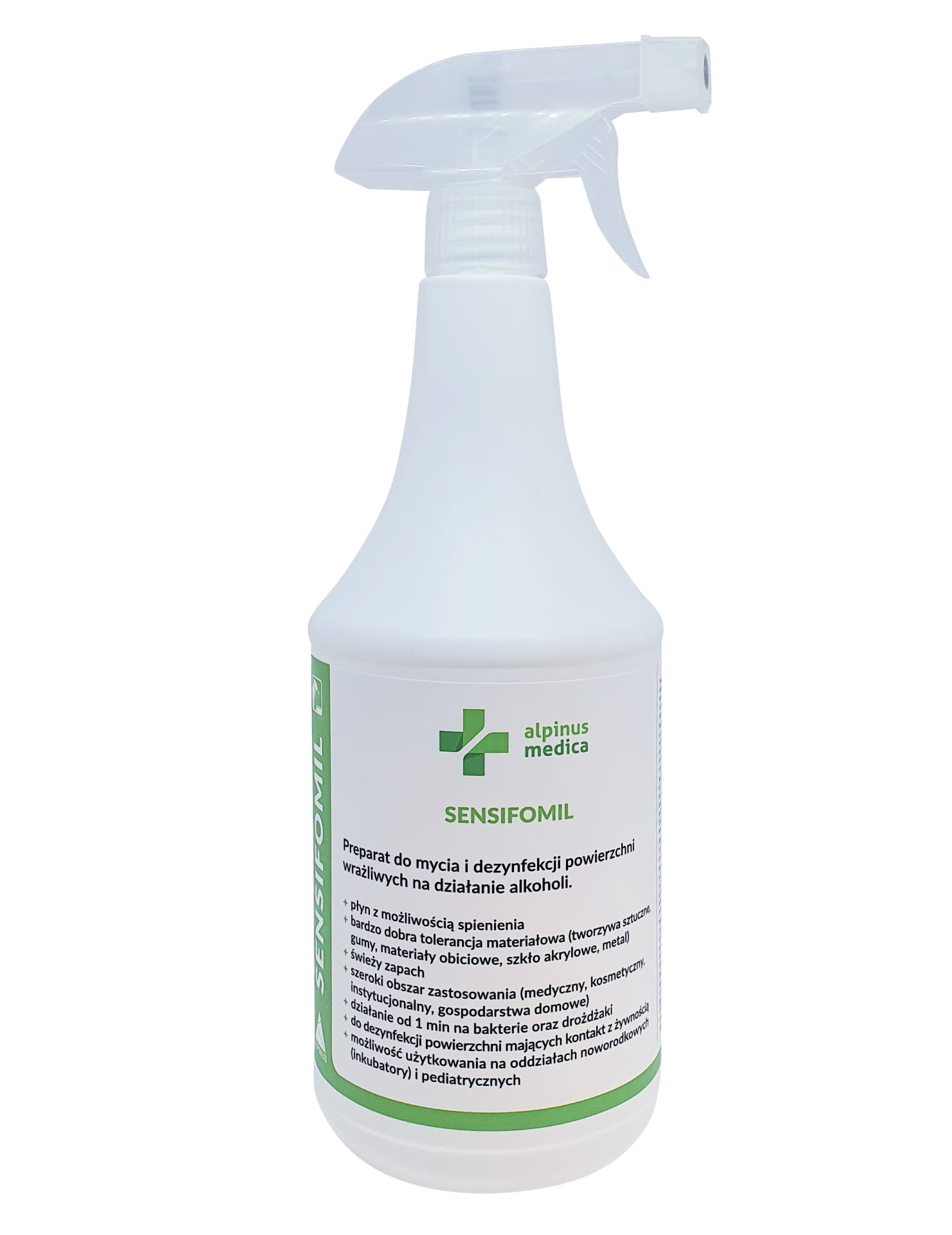 Sensifomil to gotowy do użycia preparat do mycia i dezynfekcji powierzchni, szczególnie tych wrażliwych na działanie alkoholu. Został opracowany z myślą o bezpiecznym stosowaniu w placówkach medycznych, gabinetach kosmetycznych, przemyśle spożywczym, instytucjach oraz w gospodarstwach domowych. Doskonale sprawdza się na powierzchniach mających kontakt z żywnością oraz w otoczeniu dzieci i noworodków – np. w inkubatorach i salach pediatrycznych.