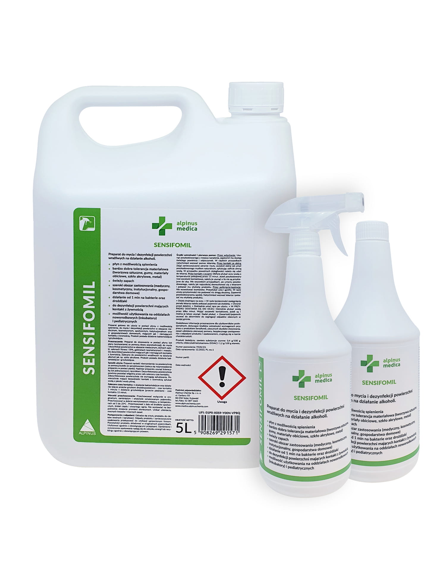 - Przeznaczenie: powierzchnie wrażliwe na alkohol, medyczne, spożywcze, kosmetyczne